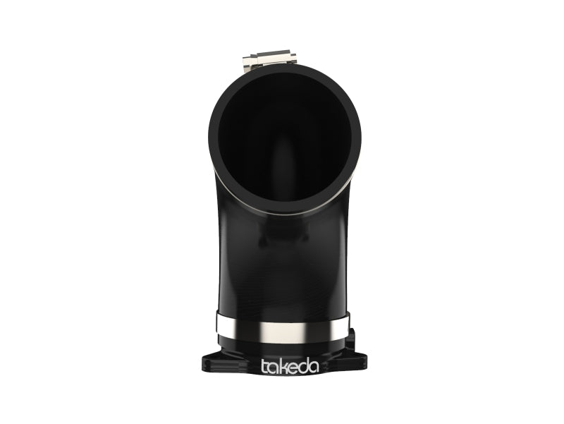 This turbo inlet removes the air flow restriction of the factory turbo inlet and guarantees the maximum air flow to the turbo for maximum power. It provides a smooth transition for the air from the factory air intake tube to the turbo with the minimum restriction. Precisely CNC machined out of 6061-T6 billet aluminum, the adapter mounts directly onto the turbo and guides the increased air flow from the Takeda intake into the turbo. . It is black anodized for durability and a stealthy appearance. This turbo inlet utilizes a flexible silicone coupling that is reinforced with three layers of polyester material, making it resistant to wear and deterioration. The silicone coupling mates directly to the aluminum turbo adapter and the factory air intake tube. All necessary clamps are provided. All necessary clamps and hardware are provided for a fast and easy installation. The factory harness bracket mounts directly onto the aluminum adapter for perfect fitment. This item will only fit with the factory air intake system. It will NOT fit with Takeda air intake systems P/N: 56-10021D, 56-10021R, 56-70021D and 56-70021R. For use with Takeda air intake system, see part number 59-20002.